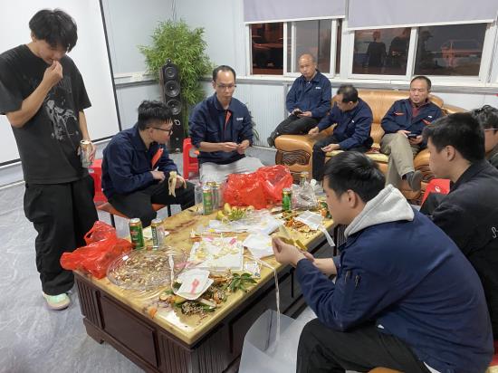 壽星們圍坐在一起,一邊分享著美味的食物,一邊暢談工作與生活,輕松的話語間滿是同事間的熟稔與親切。